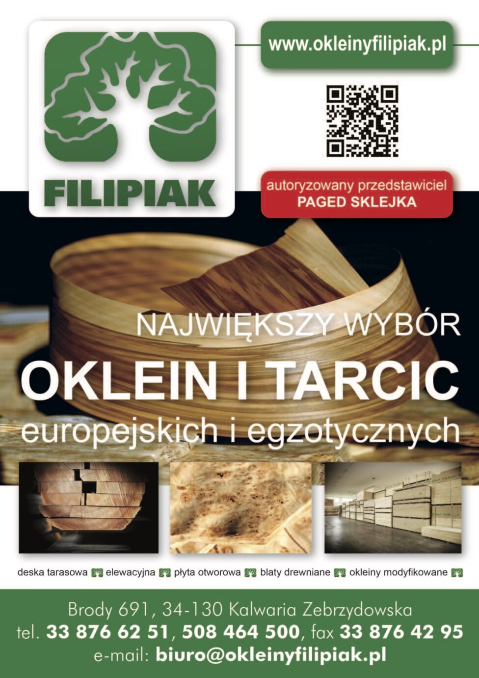 tel. 33 876 62 51, 33 876 42 95 tel. GSM 602 15 42 91, 604 23 79 09, e-mail: biuro@okleinyfilipiak.pl