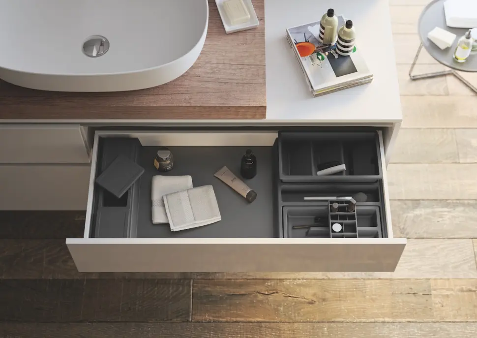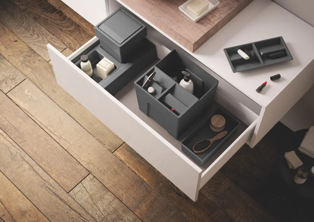 Przykładem takiego rozwiązania są organizery ONDA Line od PEKA, które oferują modułowe wkłady do szuflad, pozwalające na elastyczne dopasowanie przestrzeni do własnych potrzeb. Dzięki specjalnym przegrodom można uporządkować nawet najmniejsze akcesoria, co pomaga w utrzymaniu ładu na dłużej.