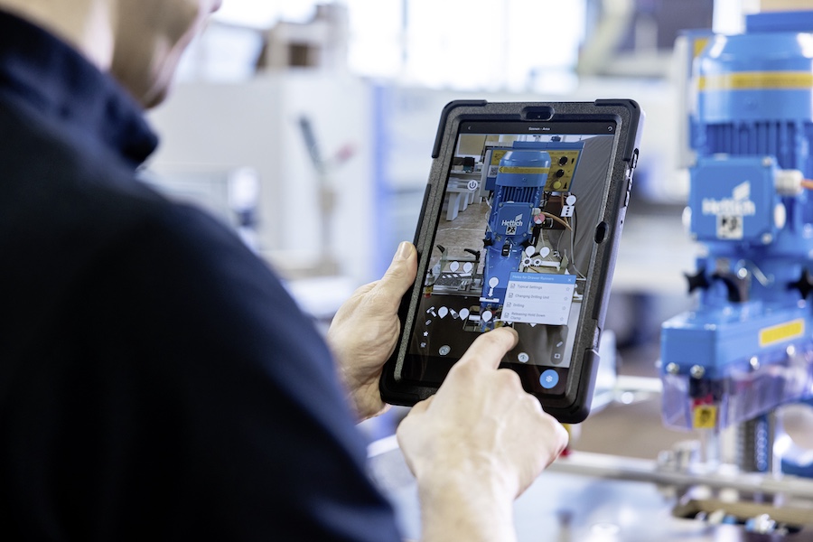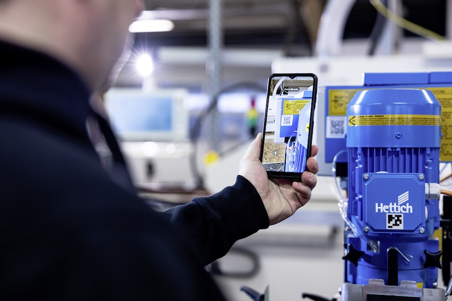 Zgodnie z zasadą „Bring your own device“ działają wszystkie nasze cyfrowe usługi technologii obróbki. Za pomocą kodu QR umieszczonego na obudowie maszyny producenci uzyskują bezpośredni dostęp do Asystenta Technicznego Hettich, który pomaga przy montażu i instalacji urządzeń.