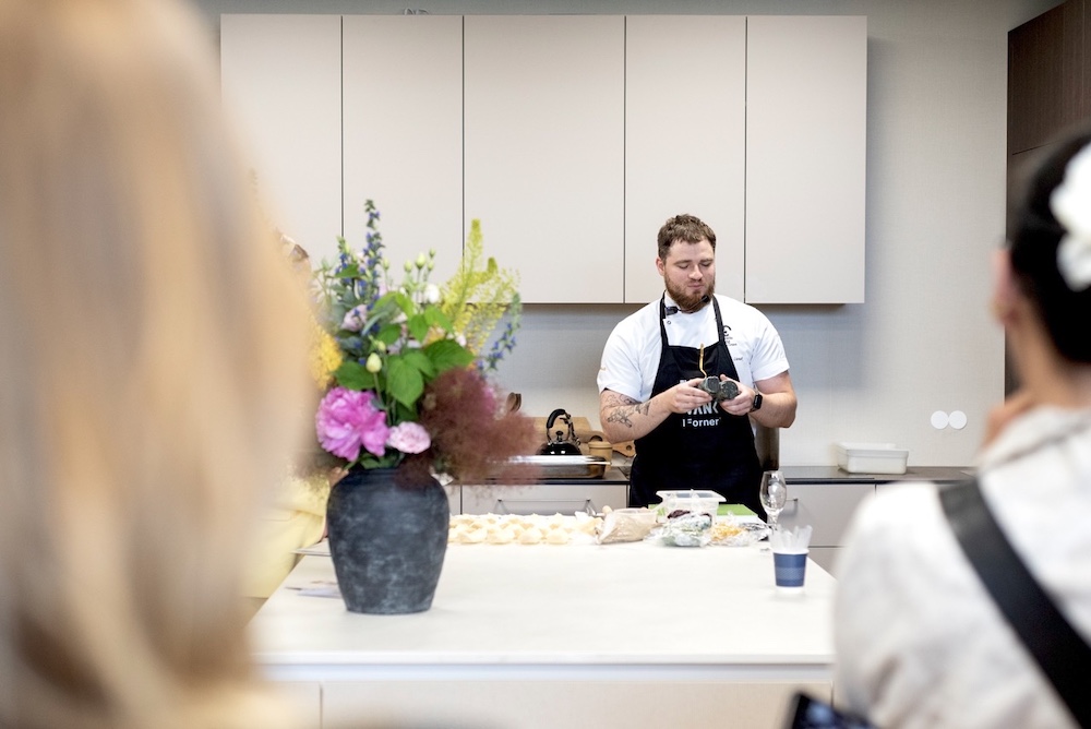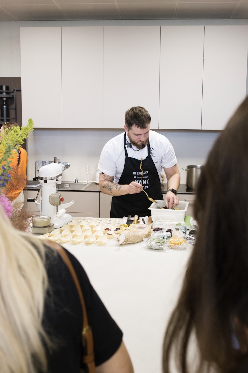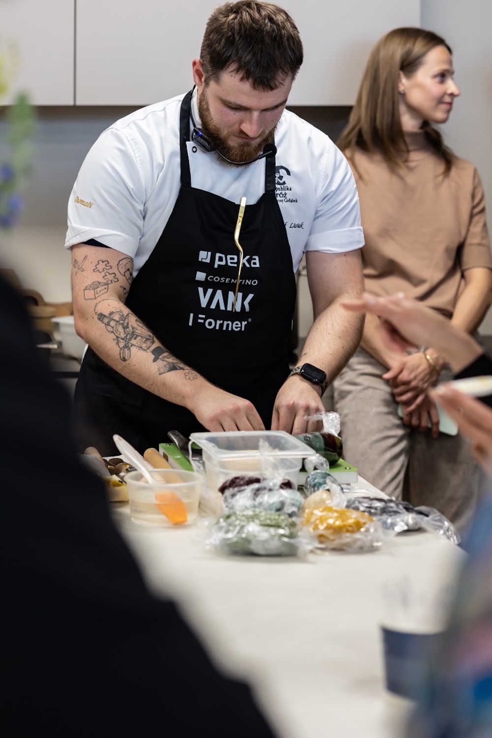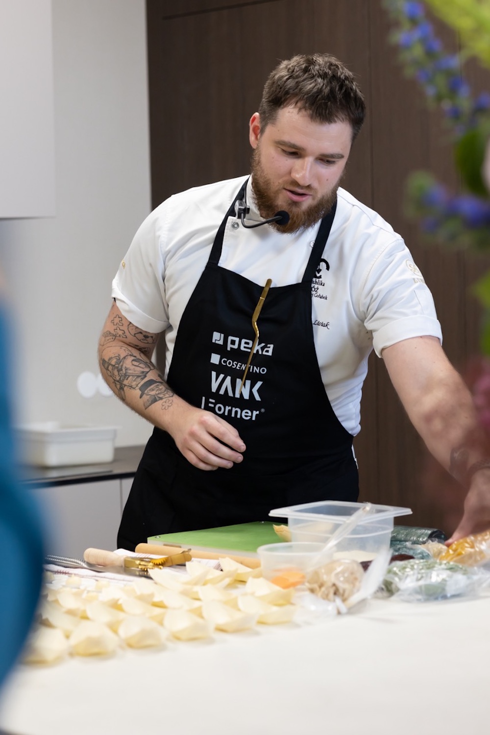 W programie wydarzenia znalazł się również live cooking – pokaz gotowania w kuchni wyposażonej w systemy PEKA, podczas którego kucharz podkreślił znaczenie ergonomii i dobrze zaprojektowanej przestrzeni w codziennej pracy. Wieczór zakończył się networkingiem i możliwością obejrzenia spektakularnych slabów kamienia naturalnego Sensa, eksponowanych przed wejściem do showroomu.